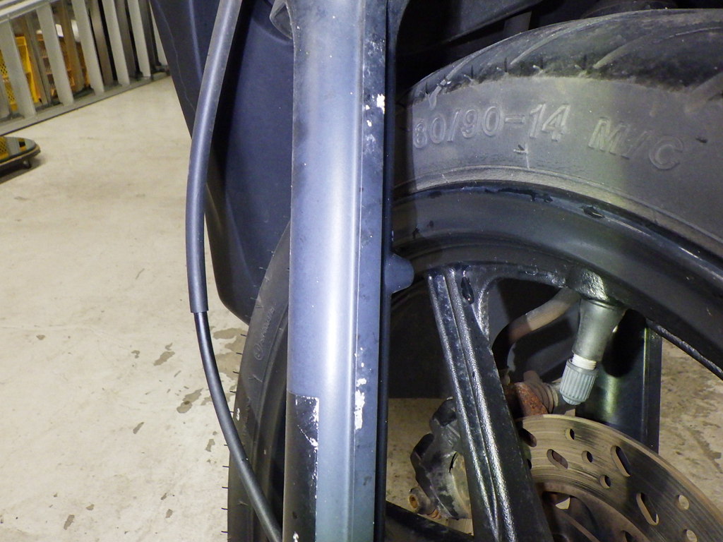 | внешняя часть вилки | царапины <много>, rust paint, потертость краски, уровень шума |