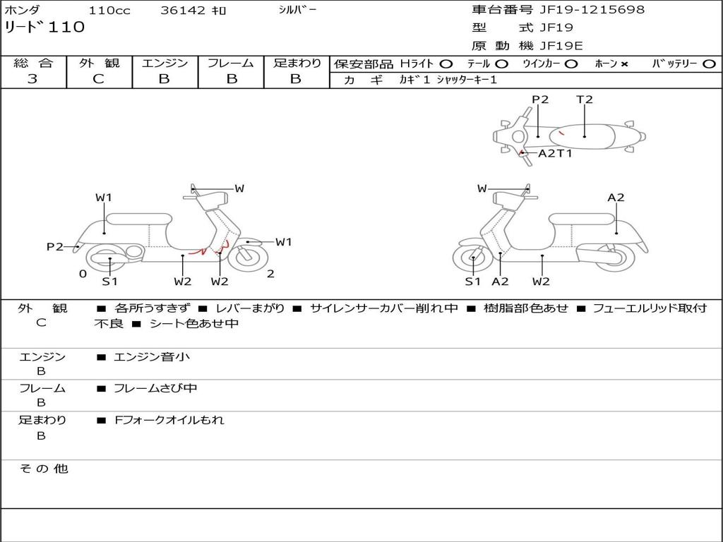 | Номер рамы / VIN | JF19-1215698 |