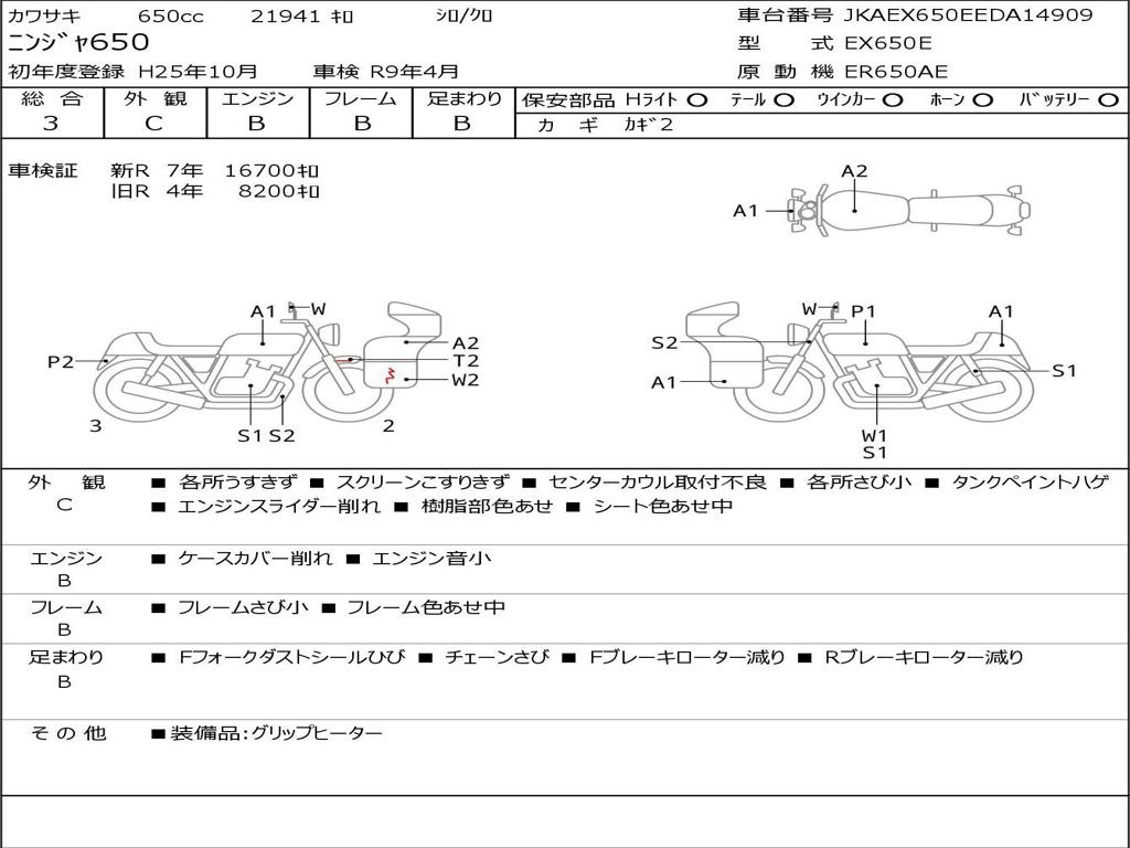 | Номер рамы / VIN | JKAEX650EEDA14909 |