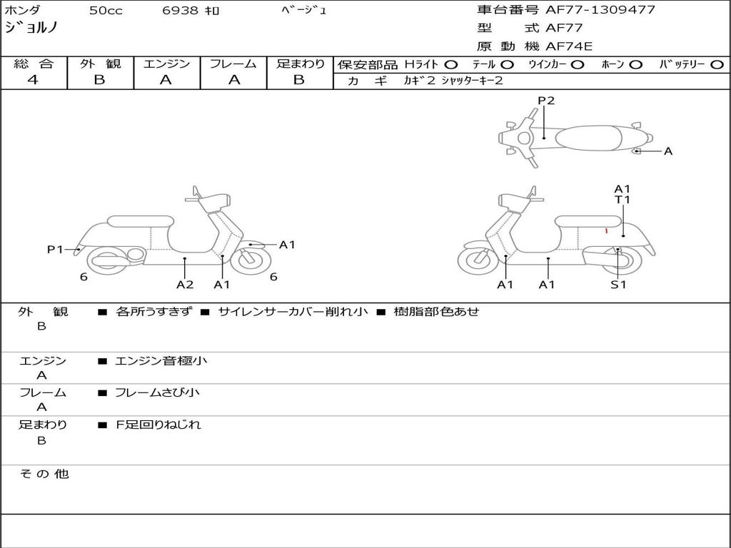 | Номер рамы / VIN | AF77-1309477 |