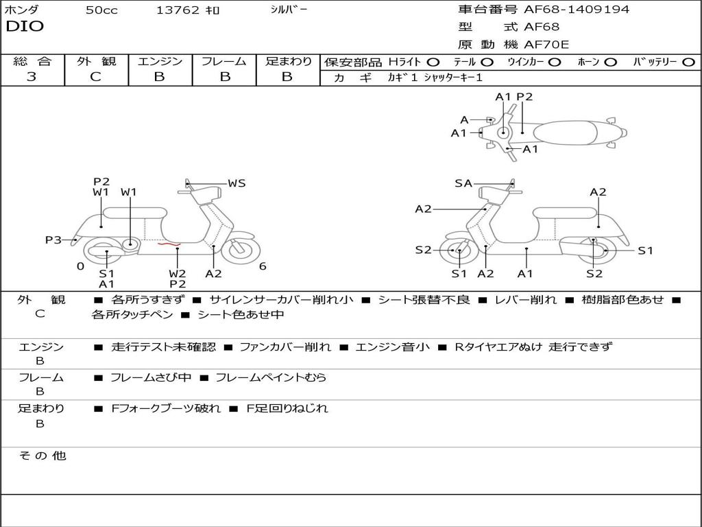 | Номер рамы / VIN | AF68-1409194 |