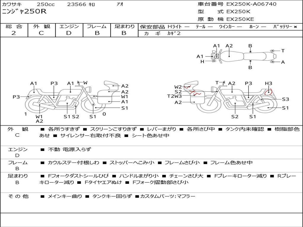 | Номер рамы / VIN | EX250K-A06740 |