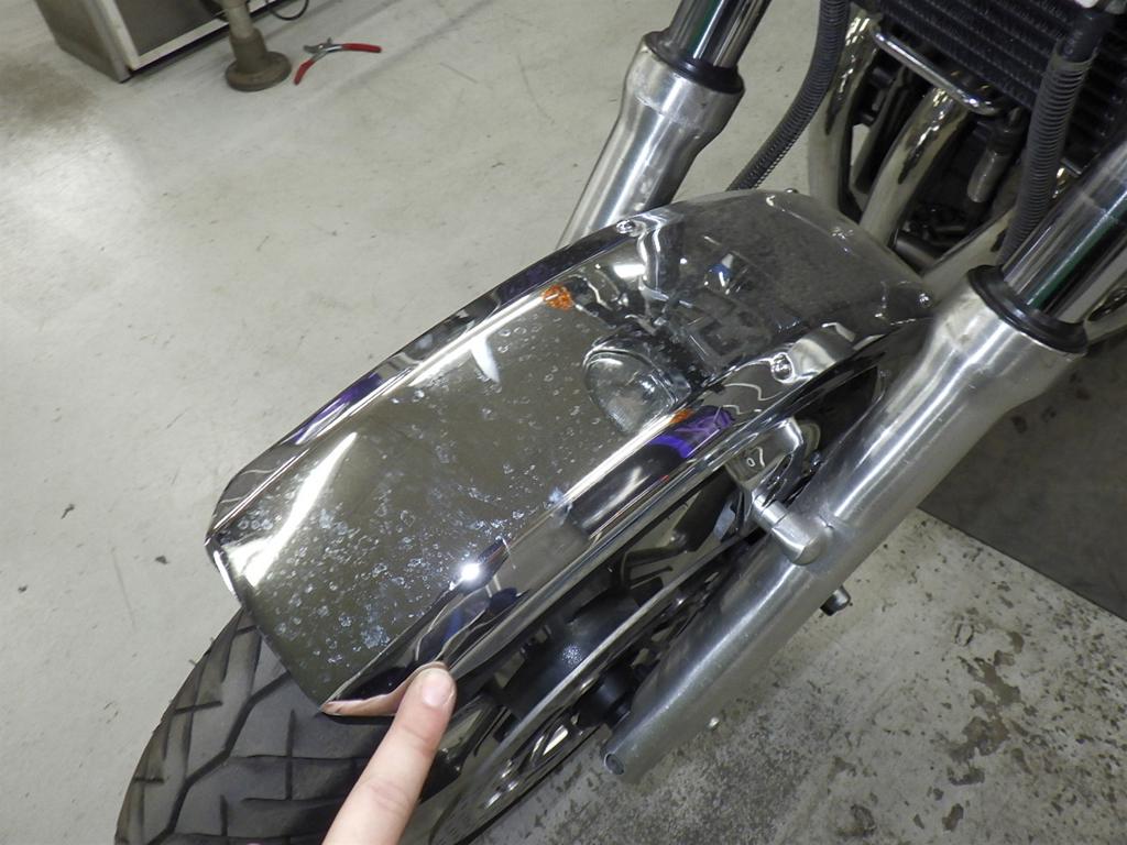 | внешняя часть вилки | следы коррозии <много>, потек масла, слабый |