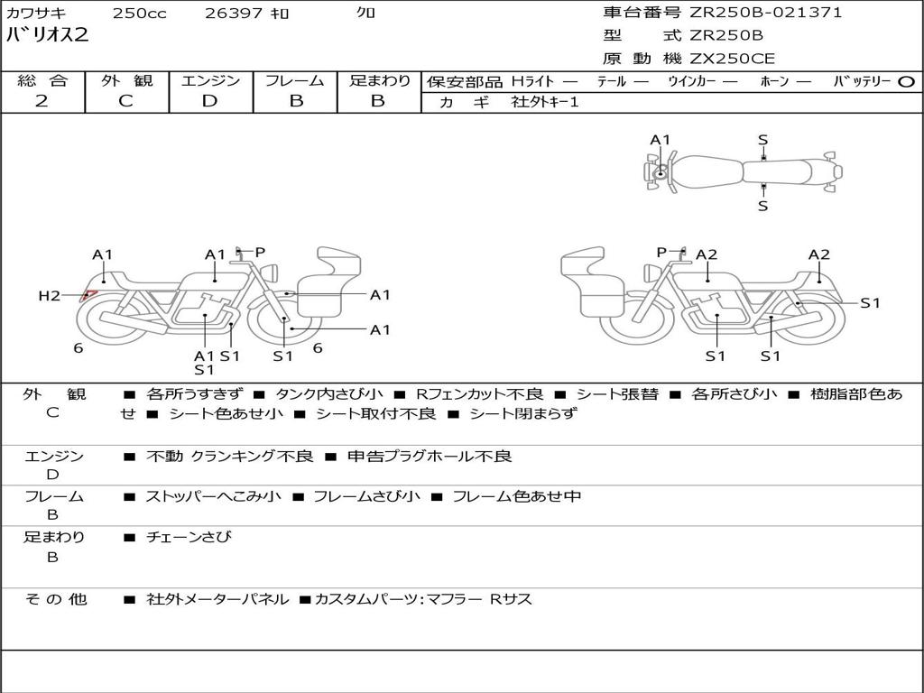 | Номер рамы / VIN | ZR250B-021371 |