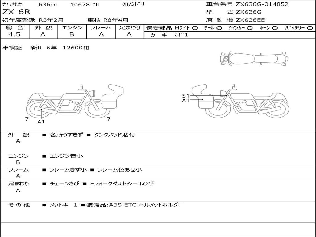 | Номер рамы / VIN | ZX636G-014852 |