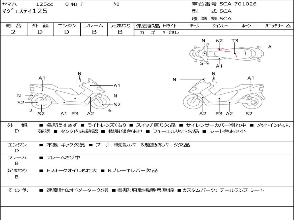 | Номер рамы / VIN | 5CA-701026 |