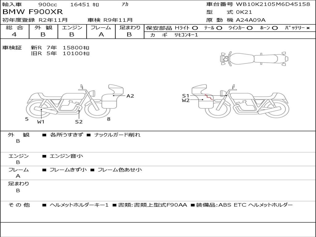 | Номер рамы / VIN | WB10K2105M6D45158 |