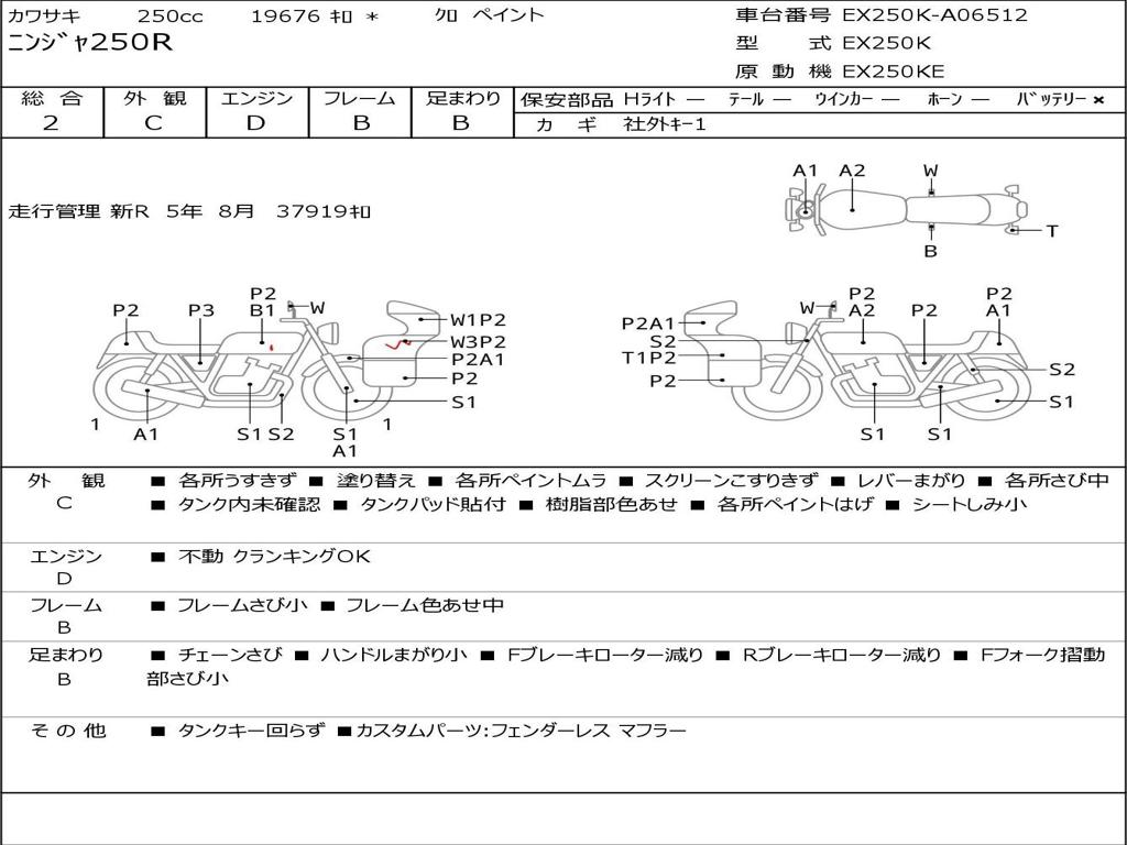 | Номер рамы / VIN | EX250K-A06512 |