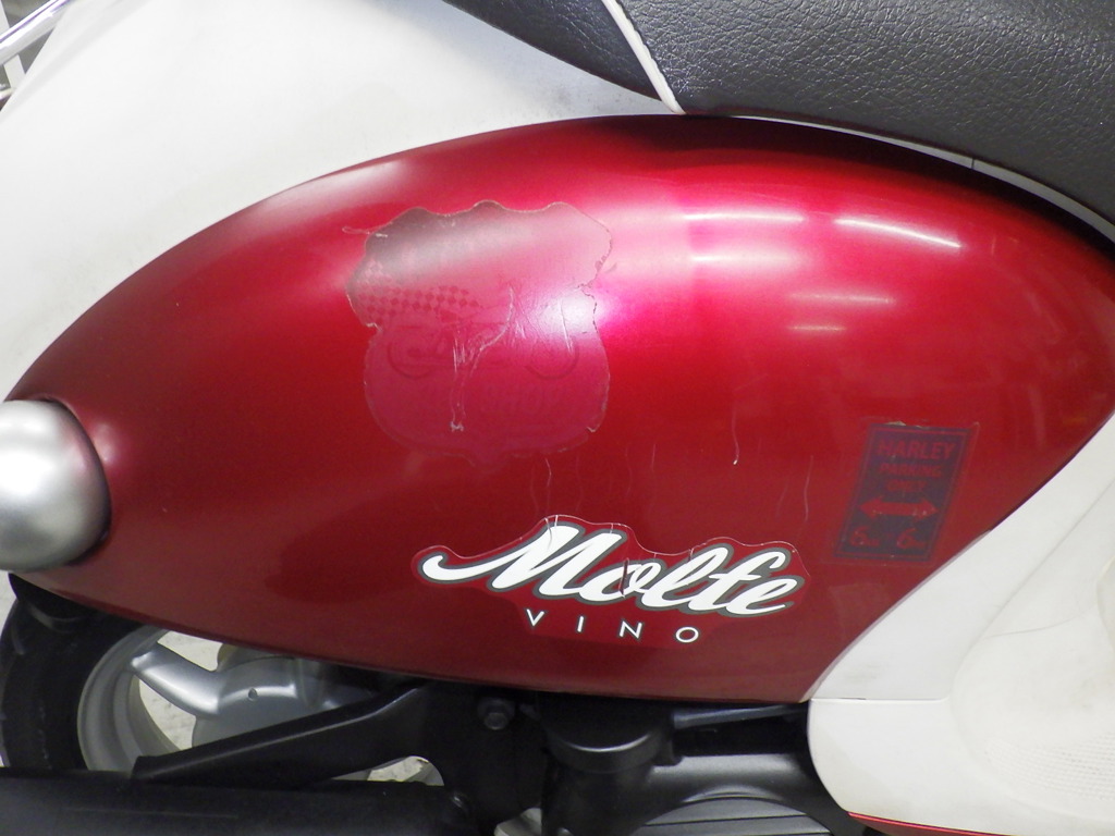 | бок | царапины <много>, выцветание краски <много> |