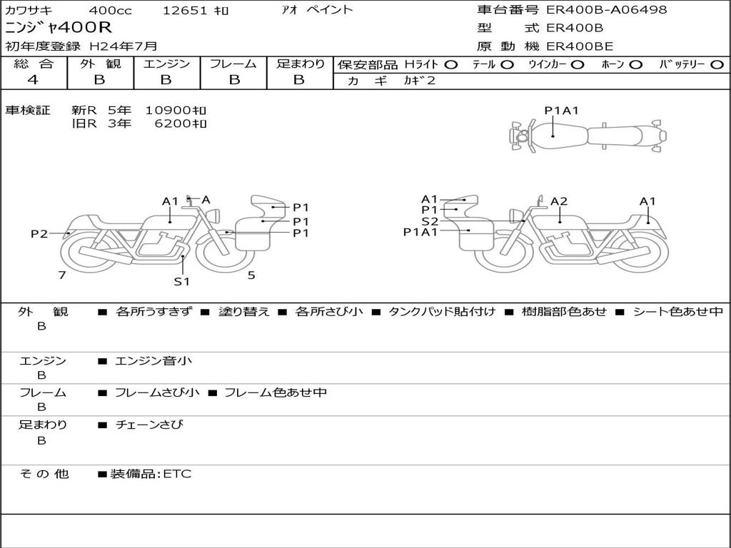 | Номер рамы / VIN | ER400B-A06498 |