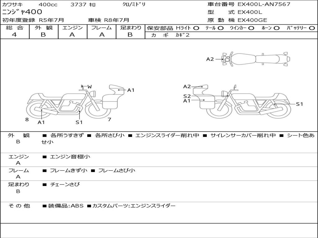 | Номер рамы / VIN | EX400L-AN7567 |
