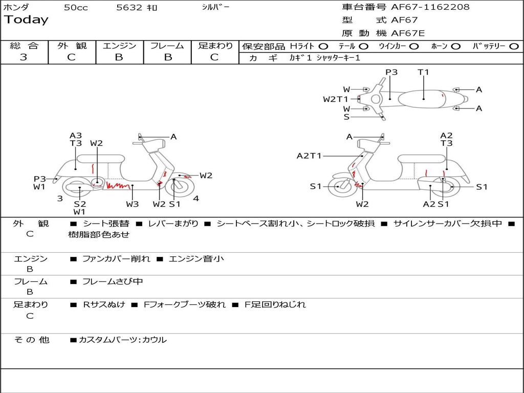 | Номер рамы / VIN | AF67-1162208 |