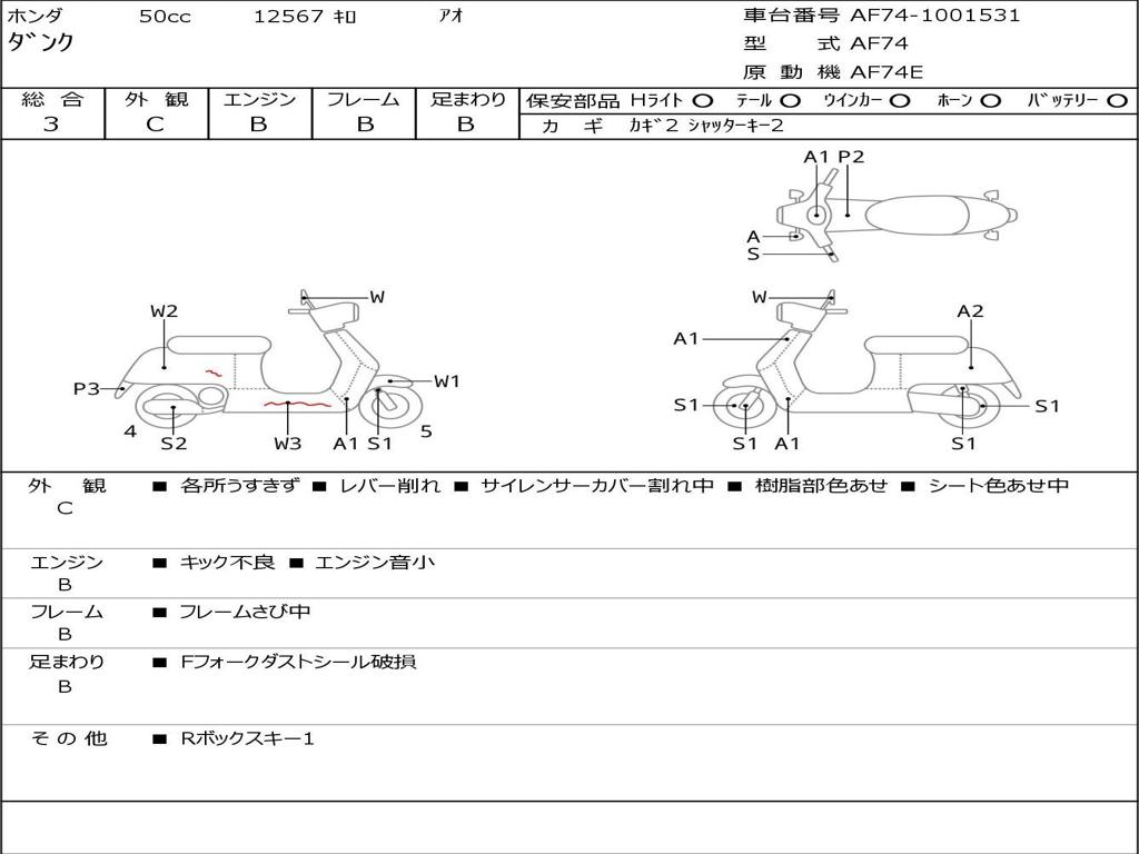 | Номер рамы / VIN | AF74-1001531 |