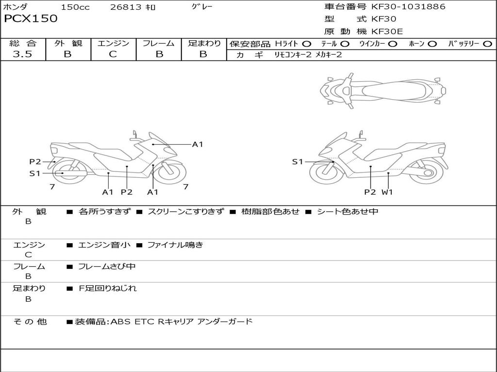 | Номер рамы / VIN | KF30-1031886 |