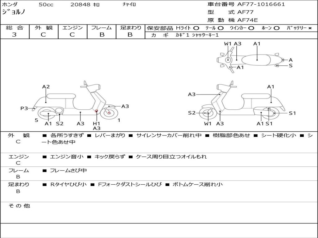 | Номер рамы / VIN | AF77-1016661 |
