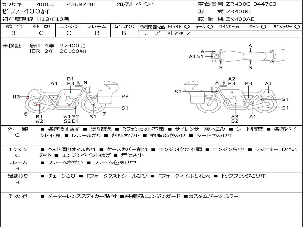 | Номер рамы / VIN | ZR400C-344763 |