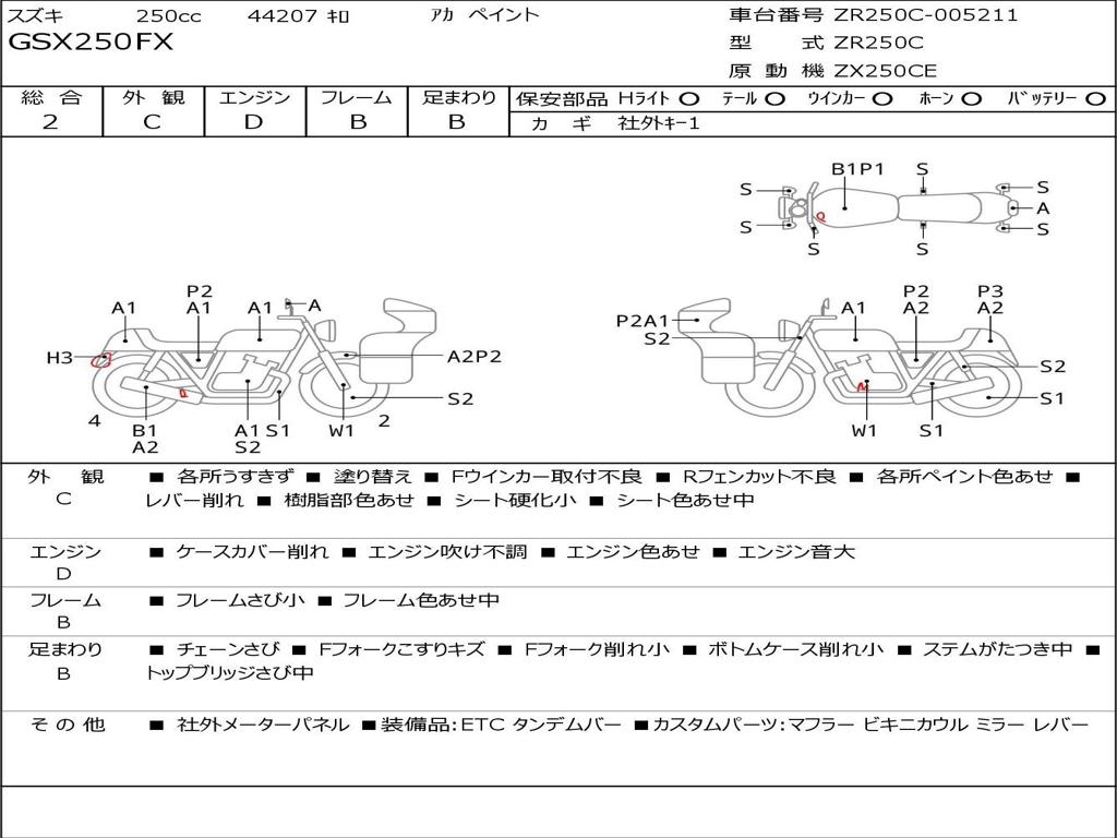 | Номер рамы / VIN | ZR250C-005211 |
