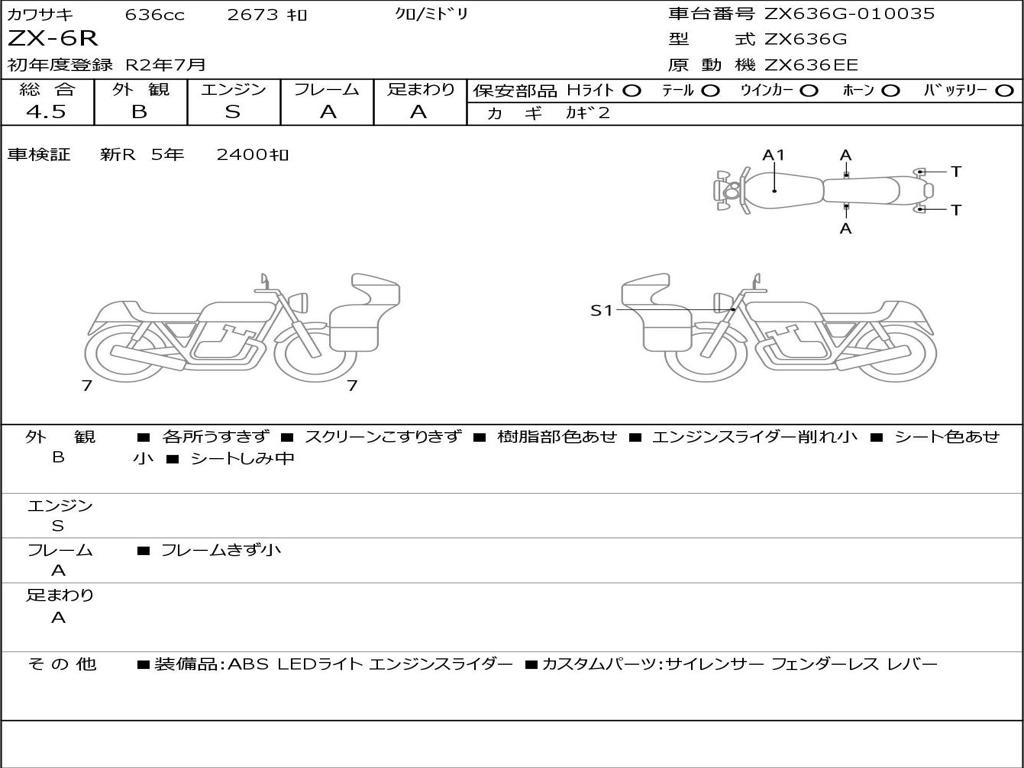 | Номер рамы / VIN | ZX636G-010035 |