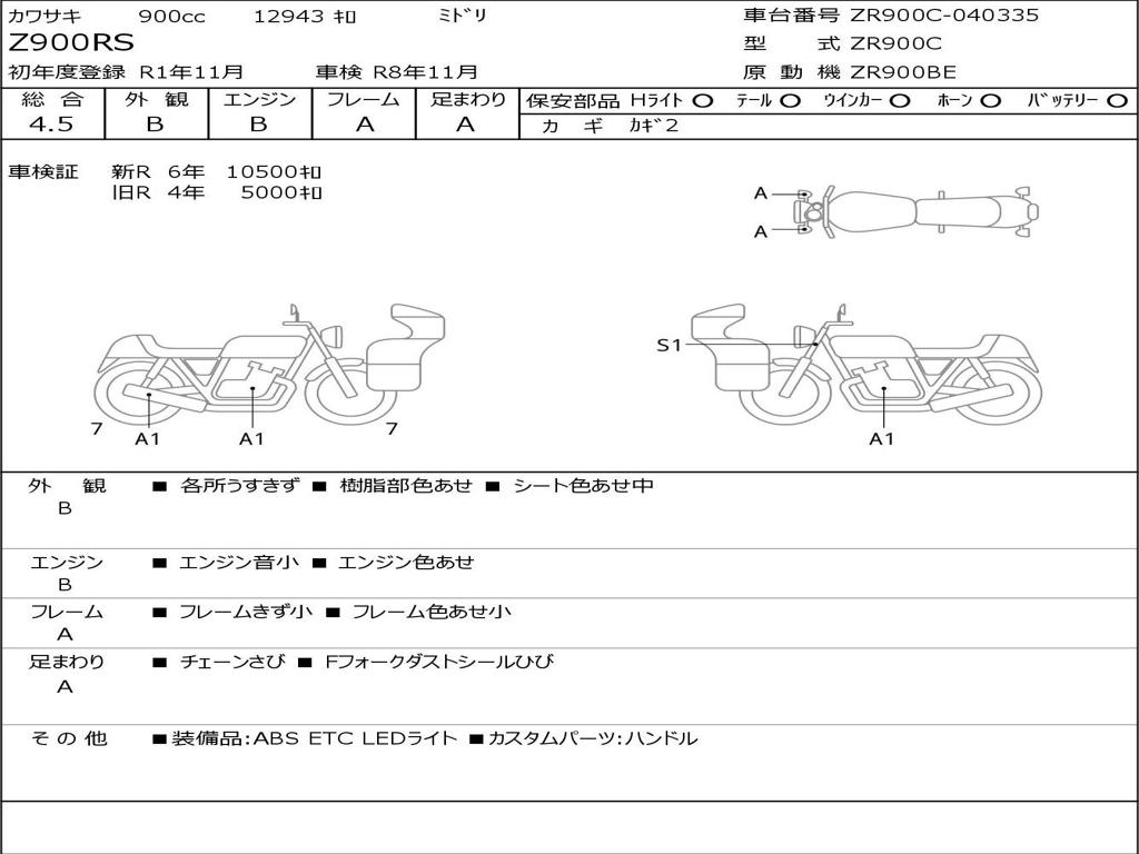 | Номер рамы / VIN | ZR900C-040335 |