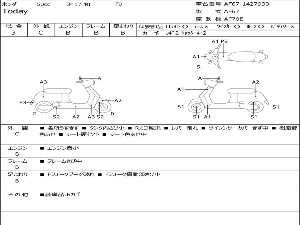 | Номер рамы / VIN | AF67-1427933 |