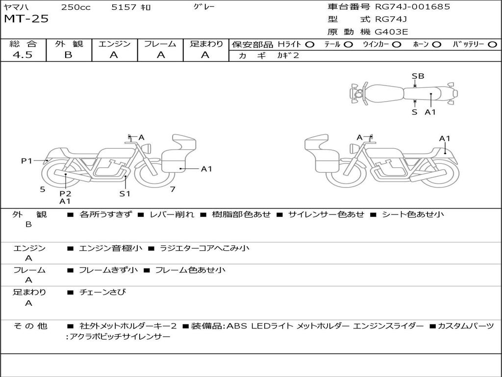 | Номер рамы / VIN | RG74J-001685 |