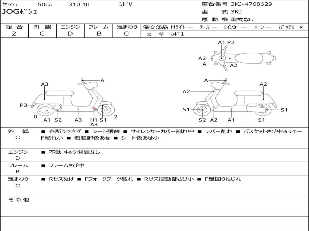 | Номер рамы / VIN | 3KJ-4768629 |