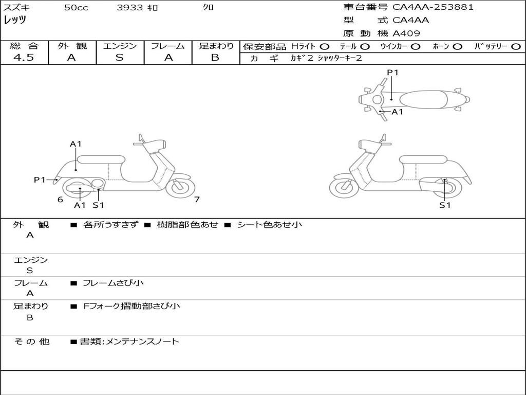 | Номер рамы / VIN | CA4AA-253881 |