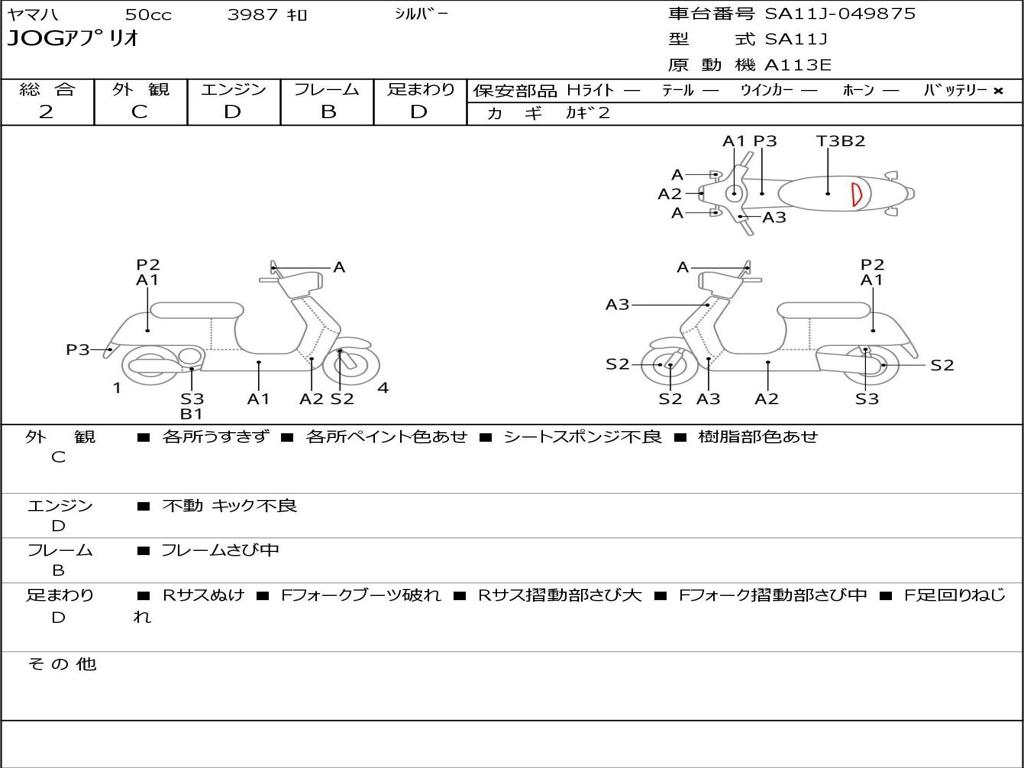 | Номер рамы / VIN | SA11J-049875 |