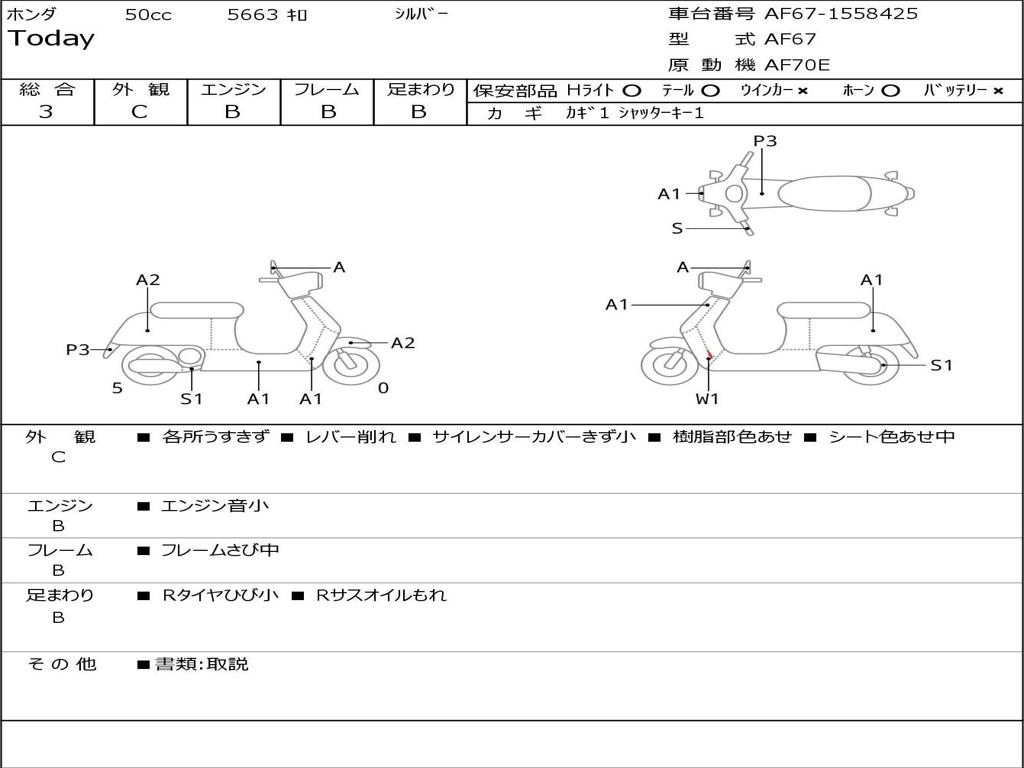 | Номер рамы / VIN | AF67-1558425 |