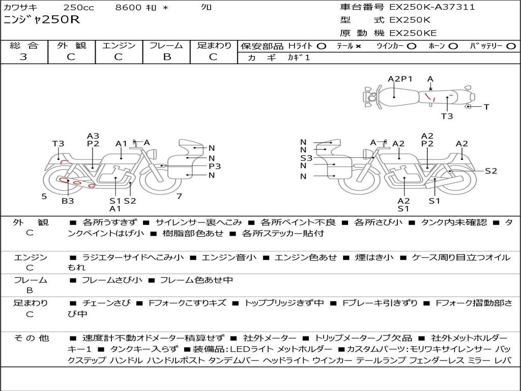 | Номер рамы / VIN | EX250K-A37311 |