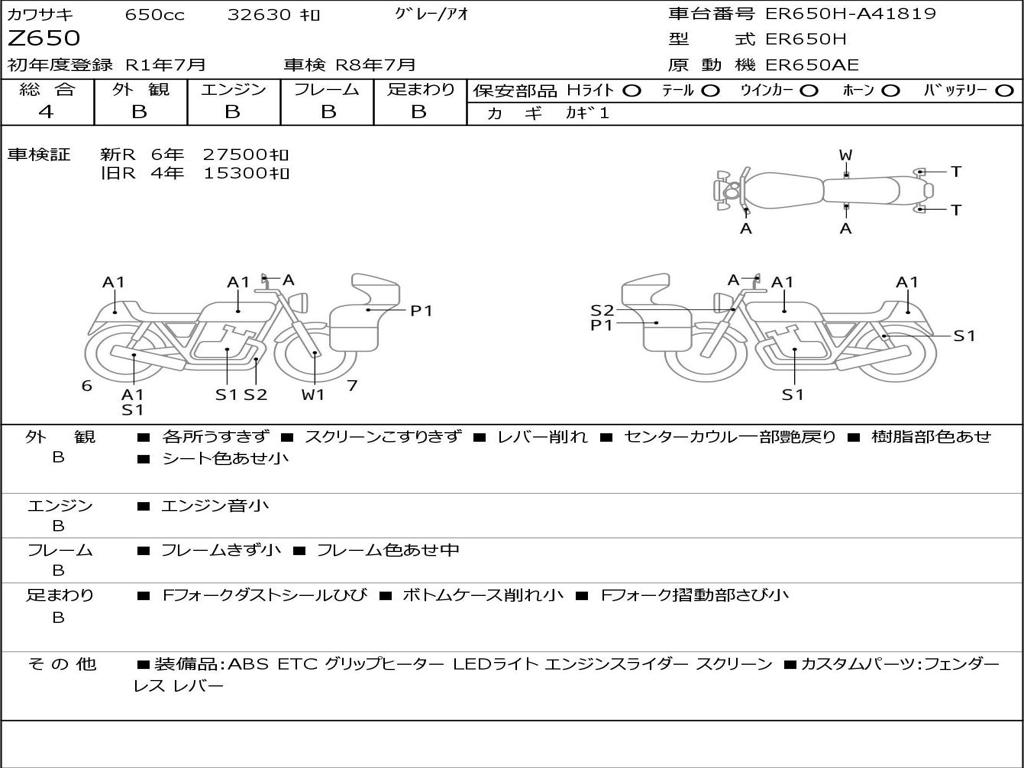 | Номер рамы / VIN | ER650H-A41819 |