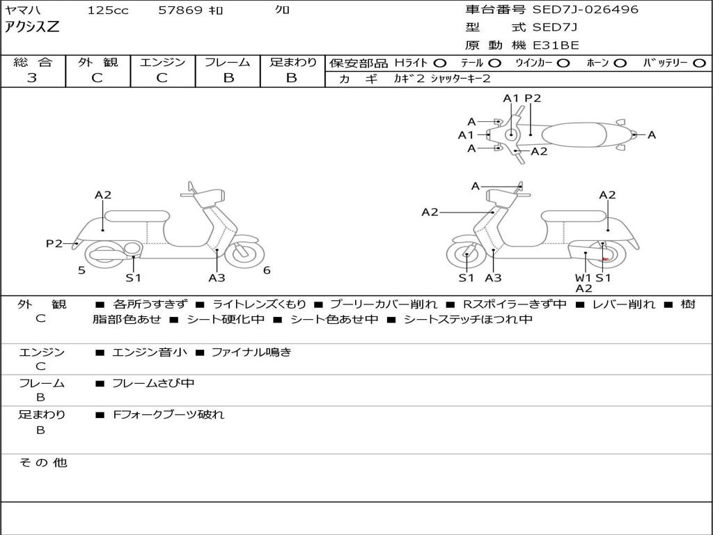 | Номер рамы / VIN | SED7J-026496 |