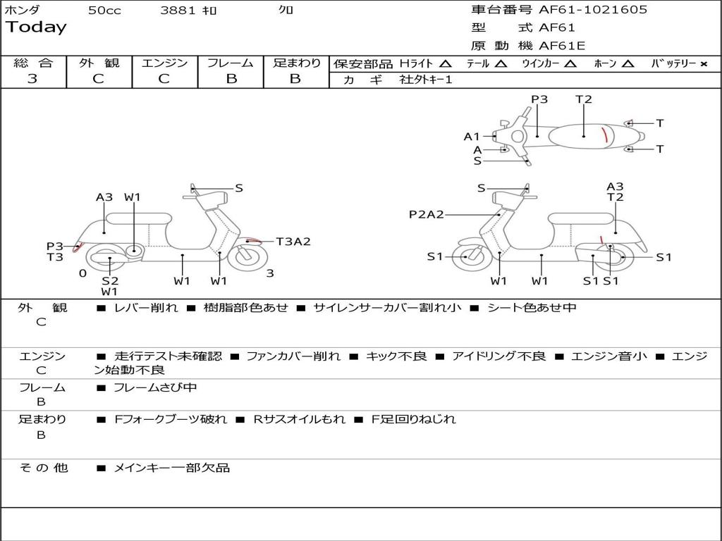 | Номер рамы / VIN | AF61-1021605 |