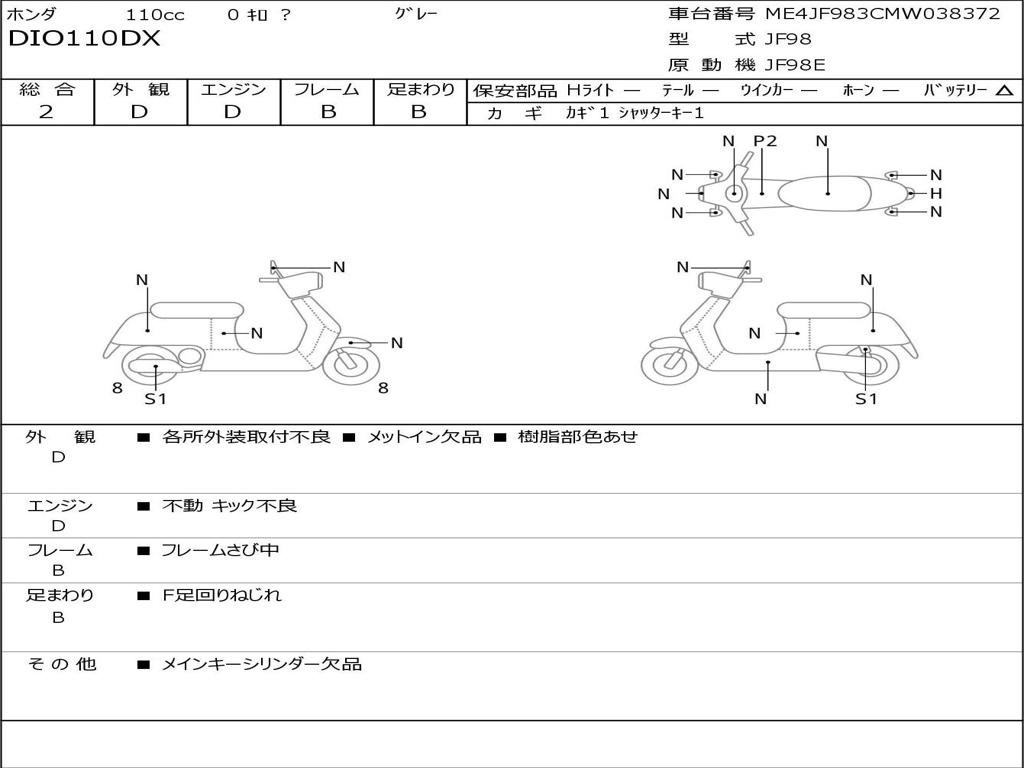 | Номер рамы / VIN | ME4JF983CMW038372 |