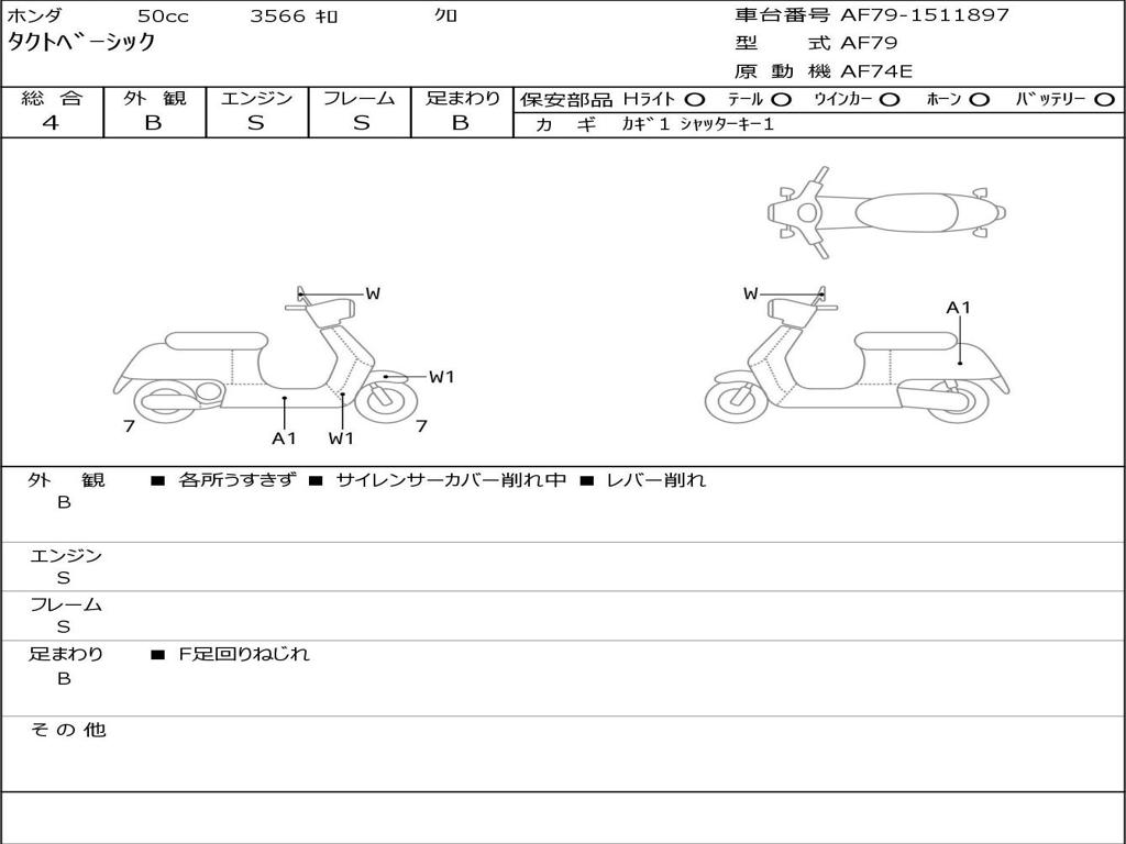 | Номер рамы / VIN | AF79-1511897 |