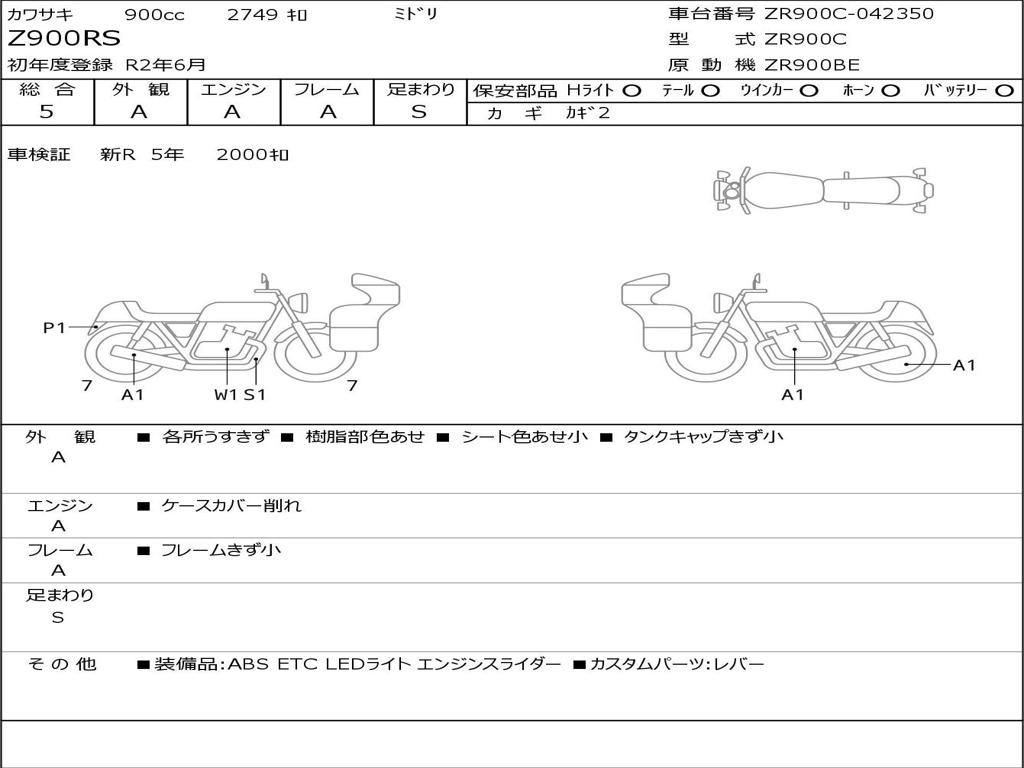 | Номер рамы / VIN | ZR900C-042350 |