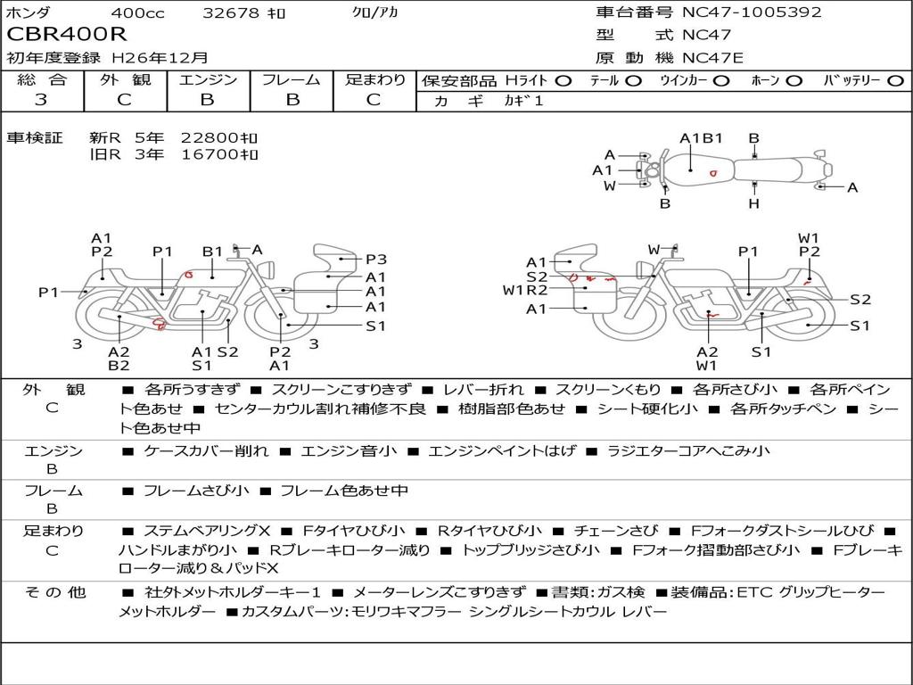 | Номер рамы / VIN | NC47-1005392 |