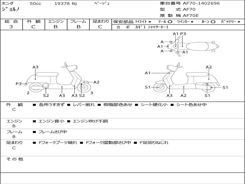 | Номер рамы / VIN | AF70-1402696 |