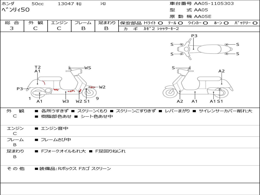 | Номер рамы / VIN | AA05-1105303 |