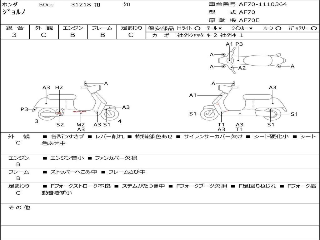 | Номер рамы / VIN | AF70-1110364 |