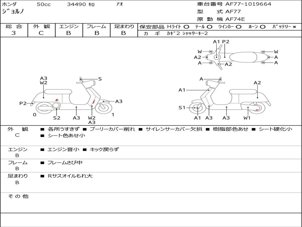 | Номер рамы / VIN | AF77-1019664 |