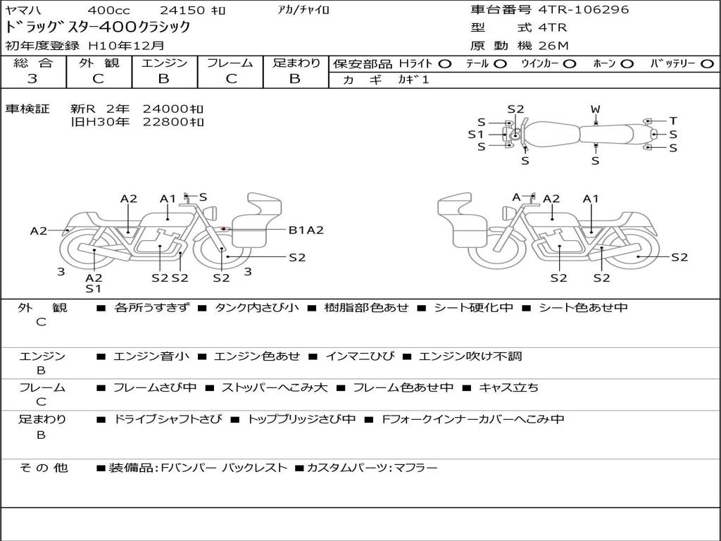 | Номер рамы / VIN | 4TR-106296 |