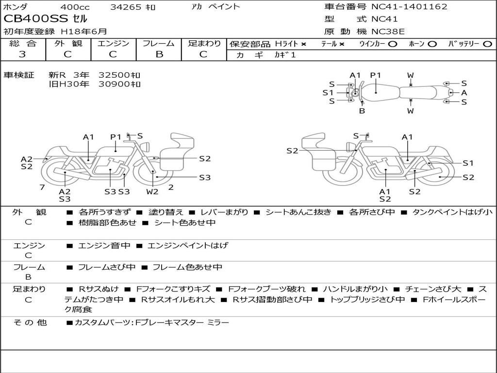 | Номер рамы / VIN | NC41-1401162 |