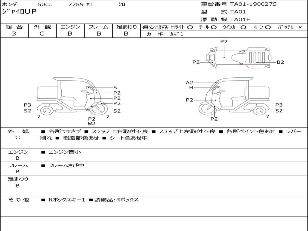 | Номер рамы / VIN | TA01-1900275 |