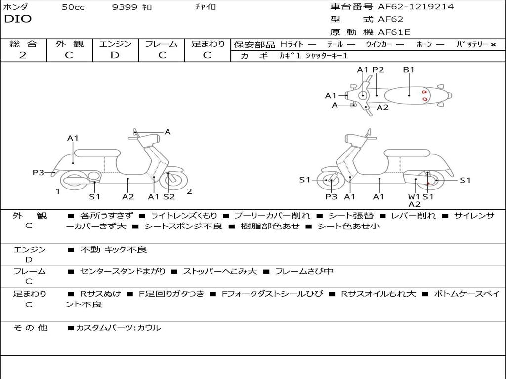 | Номер рамы / VIN | AF62-1219214 |
