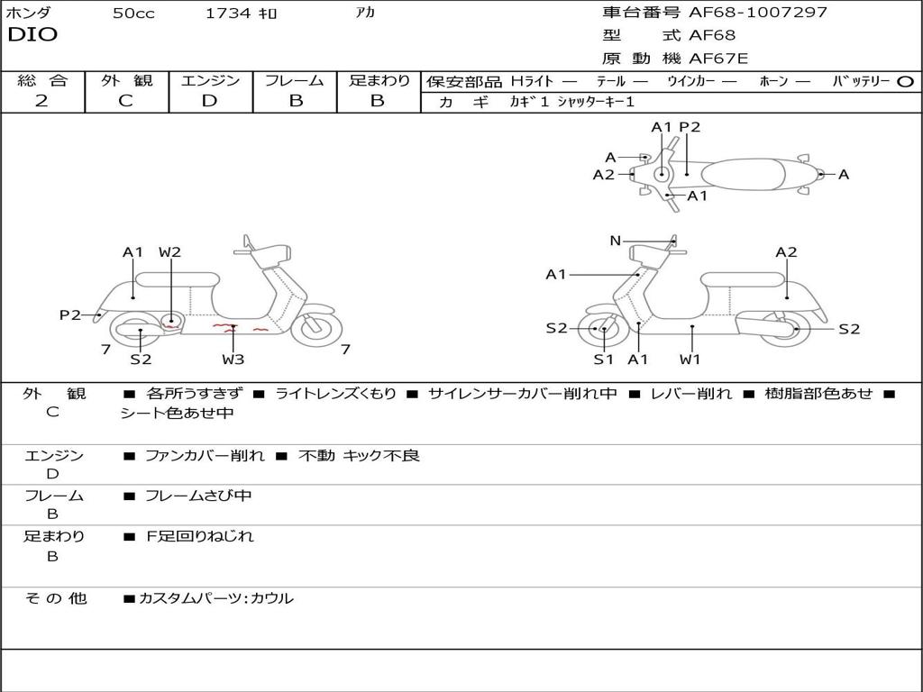 | Номер рамы / VIN | AF68-1007297 |