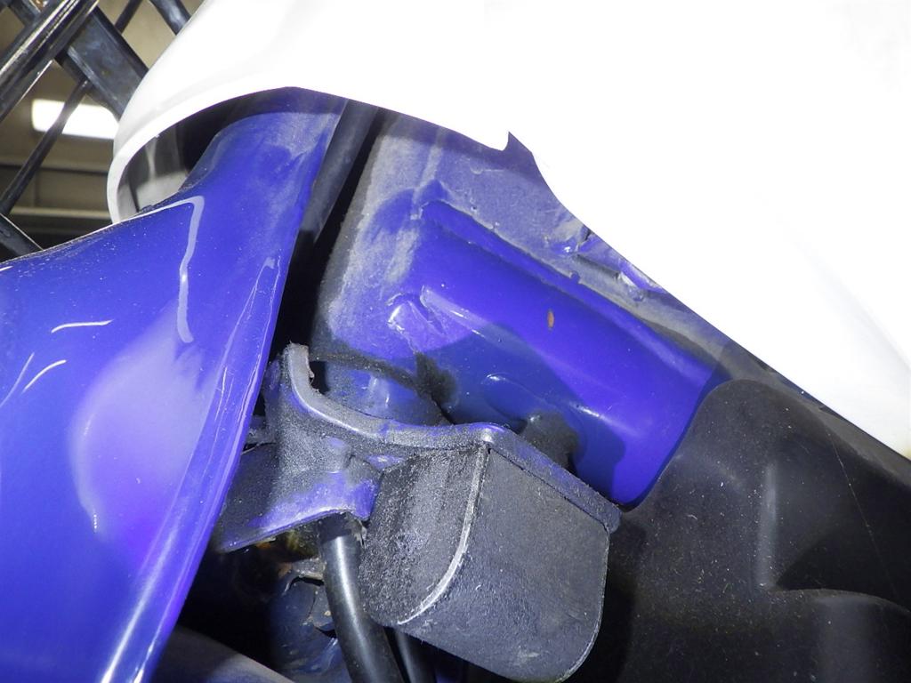 | снизу | деформация, подкрашено, скол краски <много>, трещины, отсутствует <много>, неисправен шарнир |