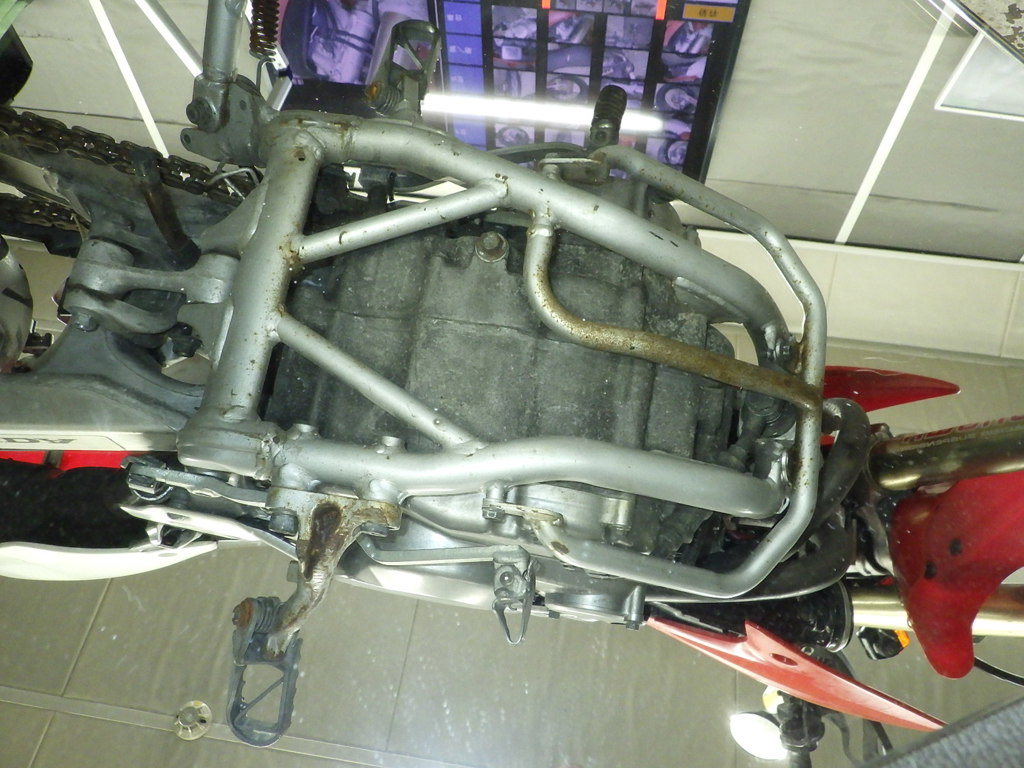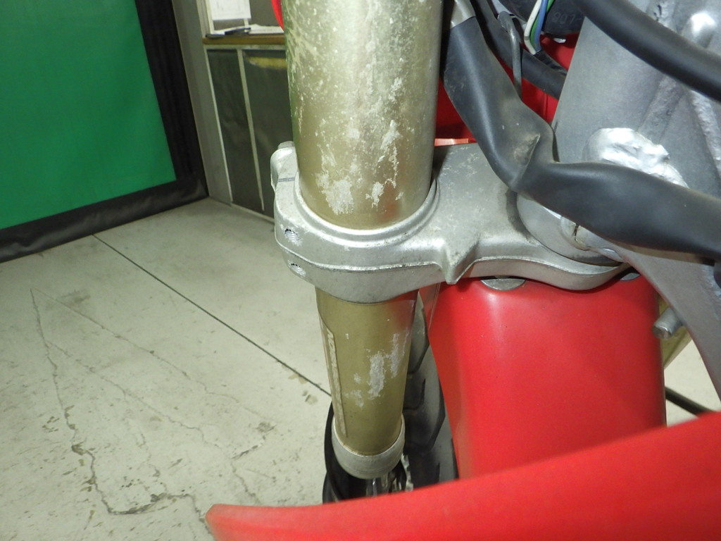 | внешняя часть вилки | следы коррозии <много>, потек масла, трещины <много> |