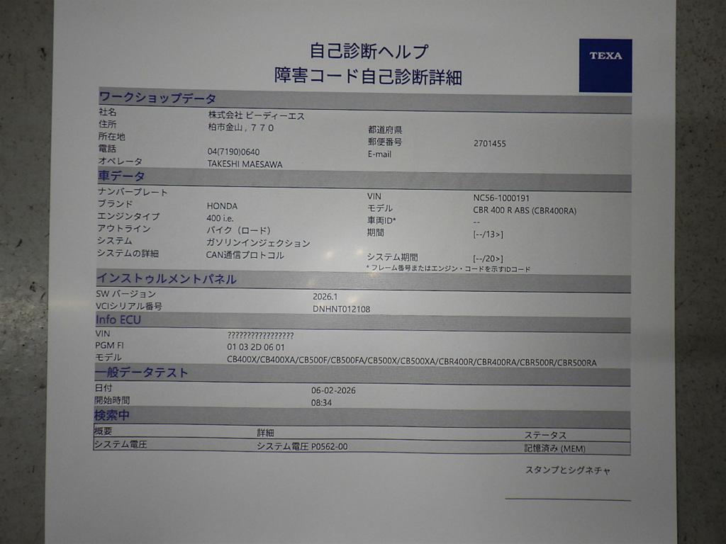 | Номер рамы / VIN | NC56-1000191 |
