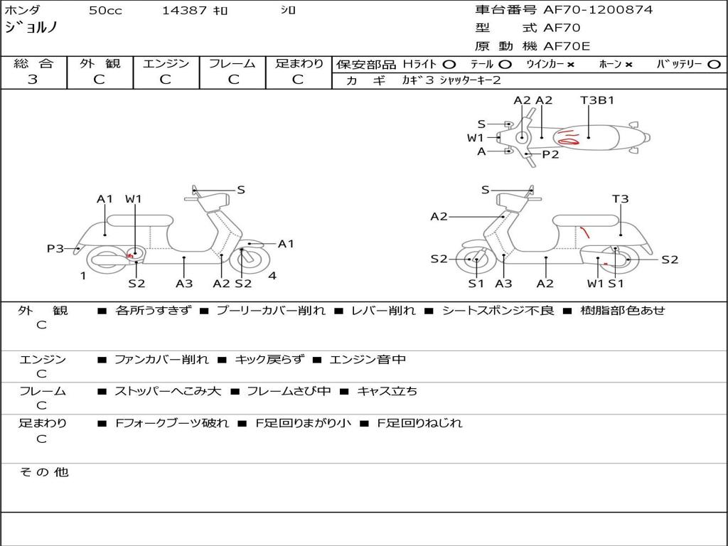 | Номер рамы / VIN | AF70-1200874 |